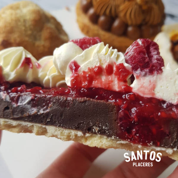 🍓 Tarta “Pasión de Chocolate y Frambuesa”: masa sablé, cremoso de chocolate, reducción de frambuesas y crema chantilly.