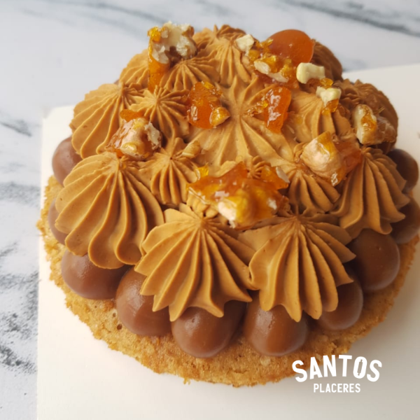 🍫 Mini torta moka: bizcocho de nuez, dulce de leche, crema moka y praliné de nuez.