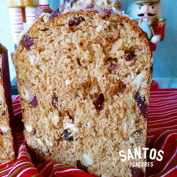 Pan dulce artesanal elaborado con materia prima de calidad, no se usan conservantes ni aditivos. Aromatizado con vainilla, ralladura de limón y naranja. Con frutas Pesa aprox 700 gr realizado con harina integral y azúcar mascabo