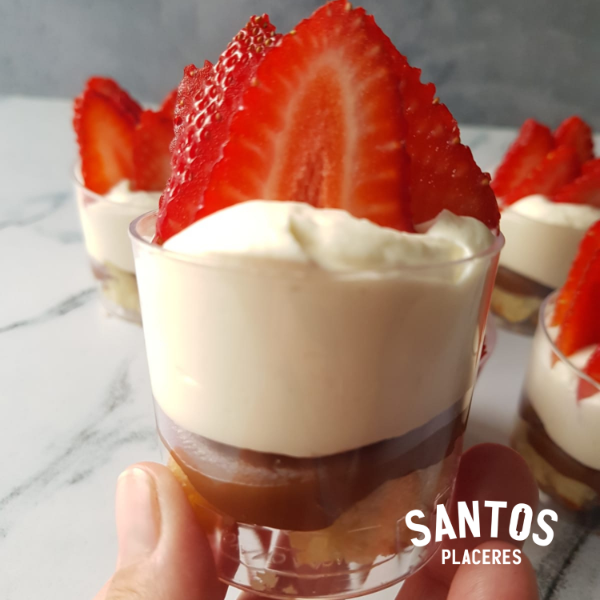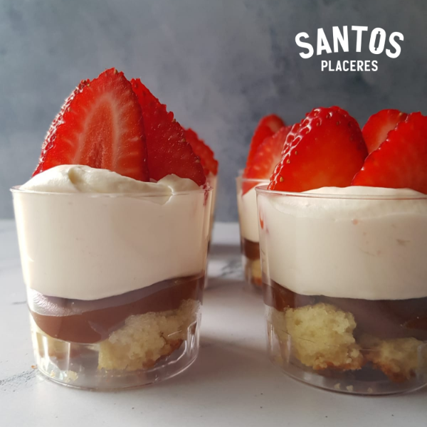 Base de bizcocho de vainilla húmedo, capa de dulce de leche, crema chantilly y frutillas seleccionadas.