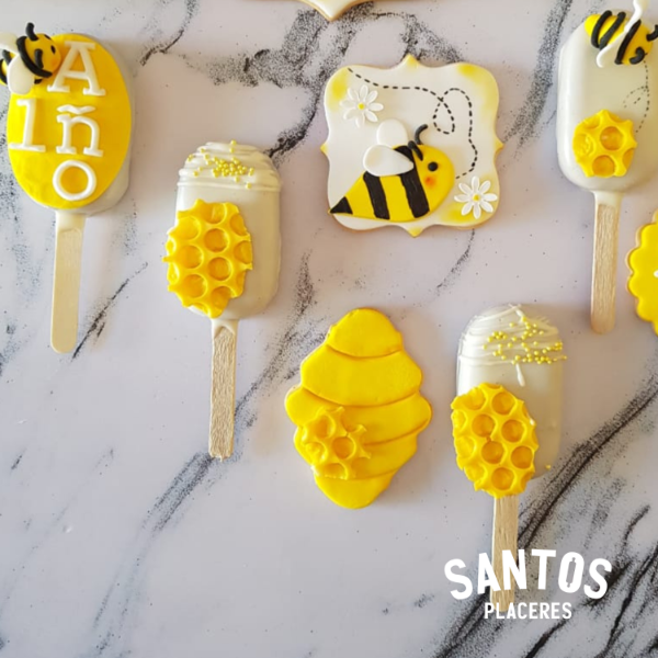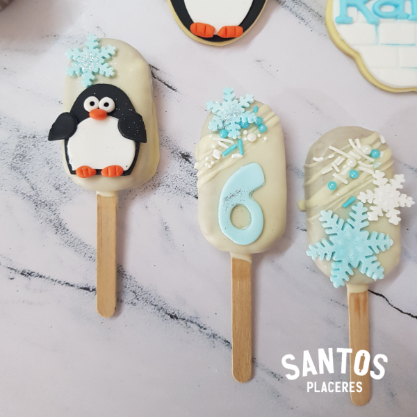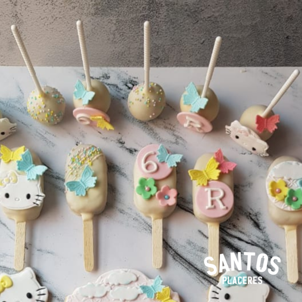 Trufas de vainilla en forma de paleta x6 unidades, Incluye decoraciones en pasta de azúcar 2 modelos diferentes según temática.